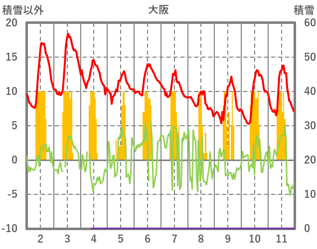 | 日 | 時 | 気温 | 降水 | 風向/風速 | 日照 | 積雪 | 降雪 |