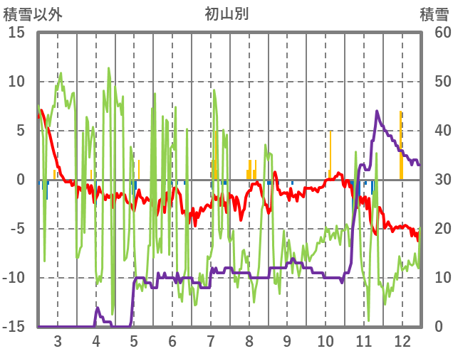 | 日 | 時 | 気温 | 降水 | 風向/風速 | 日照 | 積雪 | 降雪 |