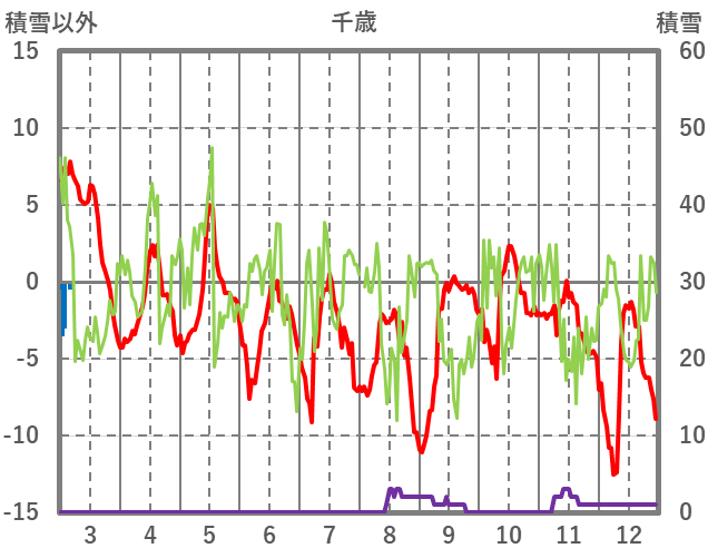 | 日 | 時 | 気温 | 降水 | 風向/風速 | 日照 | 積雪 | 降雪 |
