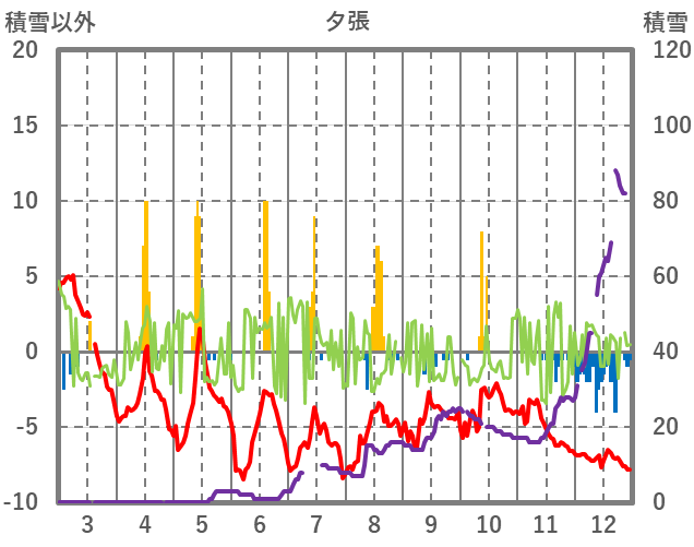 | 日 | 時 | 気温 | 降水 | 風向/風速 | 日照 | 積雪 | 降雪 |