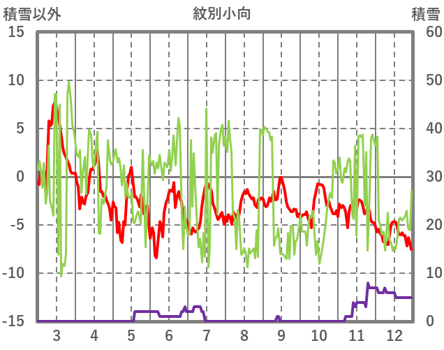| 日 | 時 | 気温 | 降水 | 風向/風速 | 日照 | 積雪 | 降雪 |
