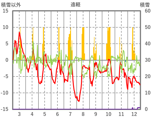 | 日 | 時 | 気温 | 降水 | 風向/風速 | 日照 | 積雪 | 降雪 |