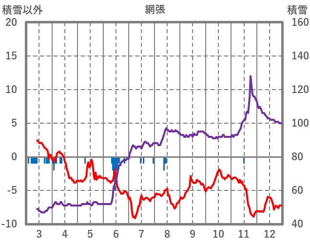 | 日 | 時 | 気温 | 降水 | 風向/風速 | 日照 | 積雪 | 降雪 |