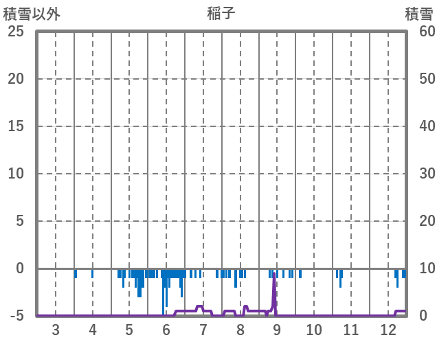 | 日 | 時 | 気温 | 降水 | 風向/風速 | 日照 | 積雪 | 降雪 |