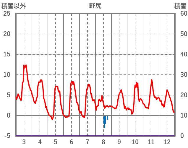 | 日 | 時 | 気温 | 降水 | 風向/風速 | 日照 | 積雪 | 降雪 |