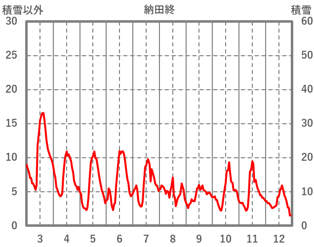 | 日 | 時 | 気温 | 降水 | 風向/風速 | 日照 | 積雪 | 降雪 |