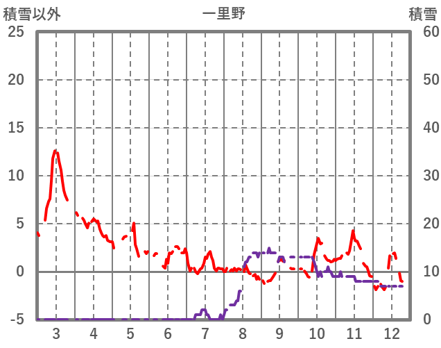 | 日 | 時 | 気温 | 降水 | 風向/風速 | 日照 | 積雪 | 降雪 |