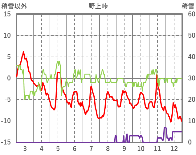 | 日 | 時 | 気温 | 降水 | 風向/風速 | 日照 | 積雪 | 降雪 |