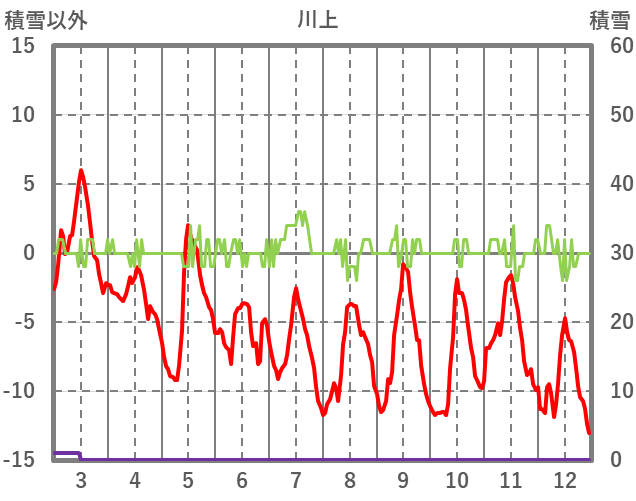 | 日 | 時 | 気温 | 降水 | 風向/風速 | 日照 | 積雪 | 降雪 |
