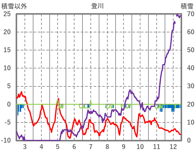 | 日 | 時 | 気温 | 降水 | 風向/風速 | 日照 | 積雪 | 降雪 |
