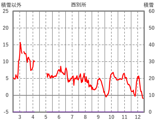 | 日 | 時 | 気温 | 降水 | 風向/風速 | 日照 | 積雪 | 降雪 |