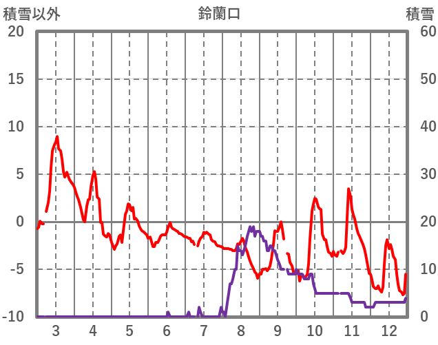 | 日 | 時 | 気温 | 降水 | 風向/風速 | 日照 | 積雪 | 降雪 |