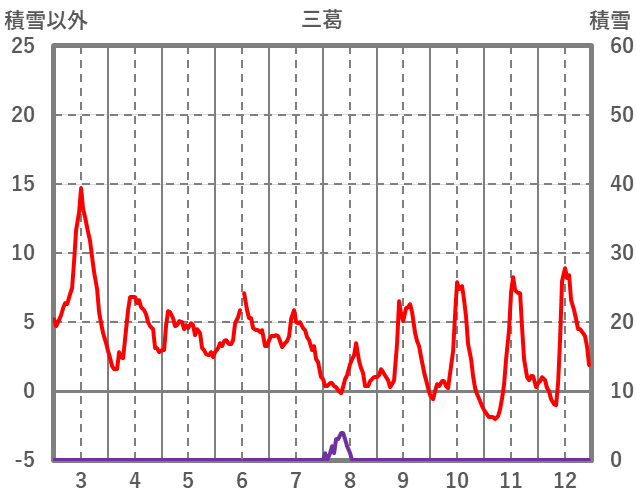 | 日 | 時 | 気温 | 降水 | 風向/風速 | 日照 | 積雪 | 降雪 |