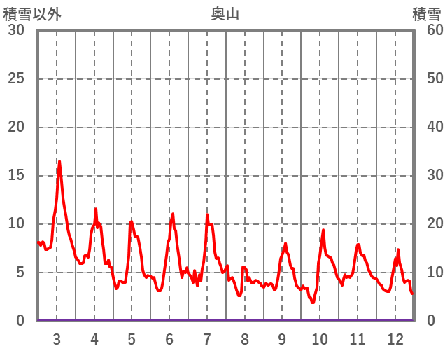 | 日 | 時 | 気温 | 降水 | 風向/風速 | 日照 | 積雪 | 降雪 |