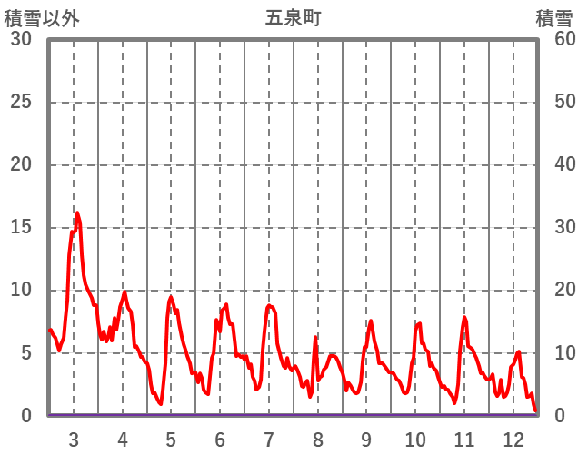 | 日 | 時 | 気温 | 降水 | 風向/風速 | 日照 | 積雪 | 降雪 |