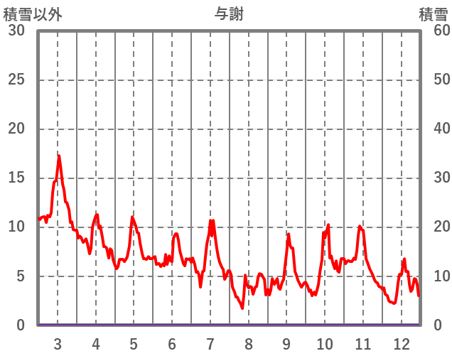 | 日 | 時 | 気温 | 降水 | 風向/風速 | 日照 | 積雪 | 降雪 |