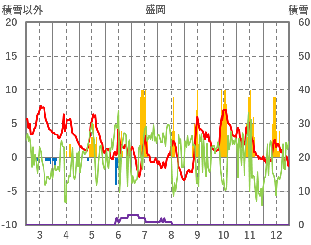 | 日 | 時 | 気温 | 降水 | 風向/風速 | 日照 | 積雪 | 降雪 |