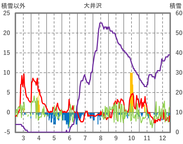 | 日 | 時 | 気温 | 降水 | 風向/風速 | 日照 | 積雪 | 降雪 |