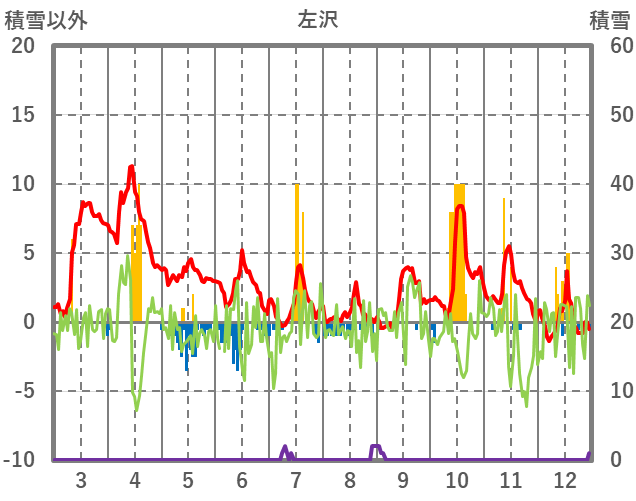 | 日 | 時 | 気温 | 降水 | 風向/風速 | 日照 | 積雪 | 降雪 |