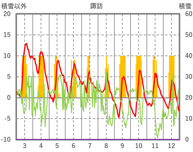 | 日 | 時 | 気温 | 降水 | 風向/風速 | 日照 | 積雪 | 降雪 |