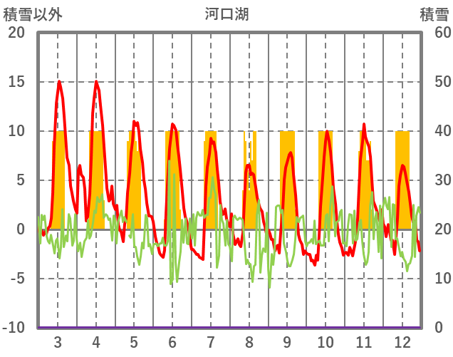 | 日 | 時 | 気温 | 降水 | 風向/風速 | 日照 | 積雪 | 降雪 |