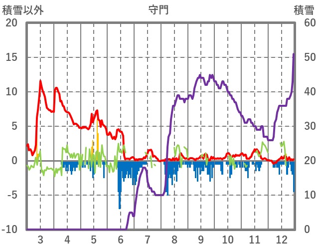 | 日 | 時 | 気温 | 降水 | 風向/風速 | 日照 | 積雪 | 降雪 |