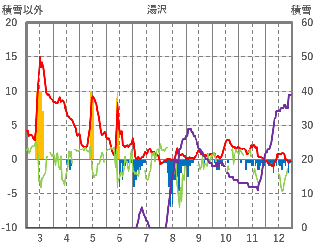 | 日 | 時 | 気温 | 降水 | 風向/風速 | 日照 | 積雪 | 降雪 |
