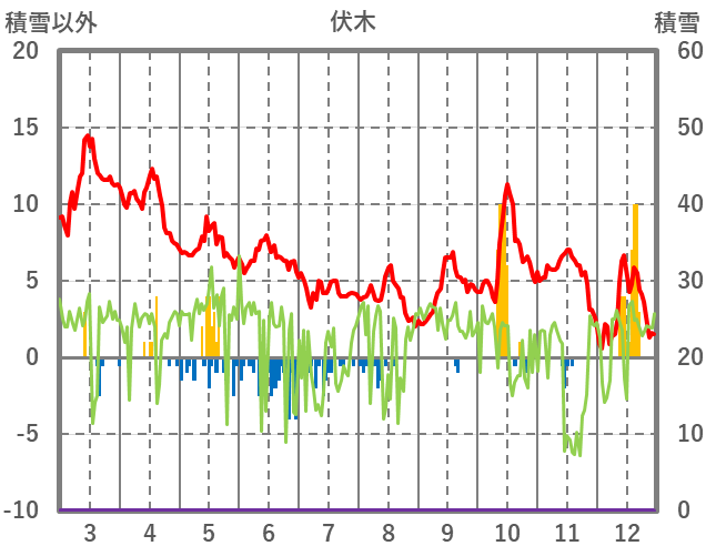 | 日 | 時 | 気温 | 降水 | 風向/風速 | 日照 | 積雪 | 降雪 |