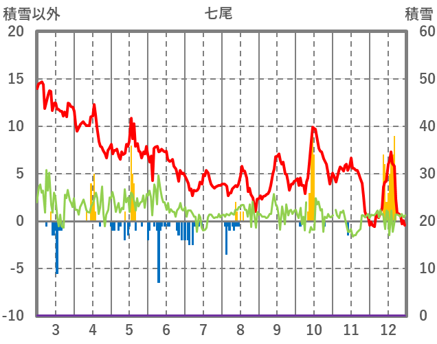 | 日 | 時 | 気温 | 降水 | 風向/風速 | 日照 | 積雪 | 降雪 |