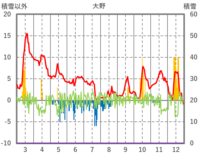 | 日 | 時 | 気温 | 降水 | 風向/風速 | 日照 | 積雪 | 降雪 |