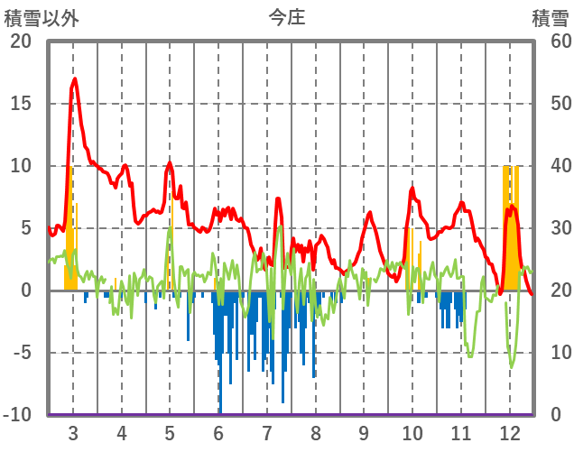 | 日 | 時 | 気温 | 降水 | 風向/風速 | 日照 | 積雪 | 降雪 |