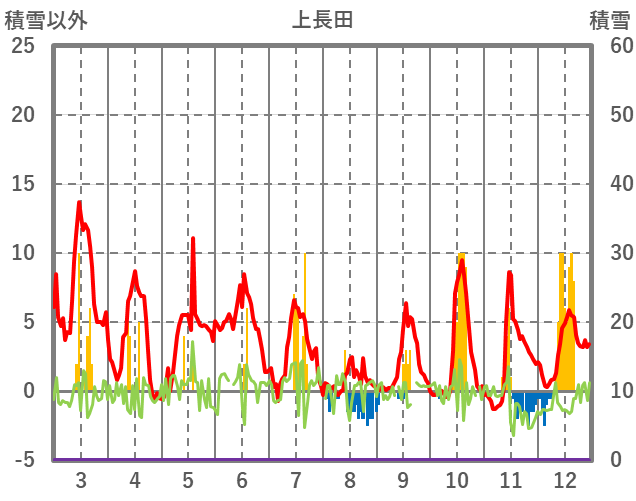 | 日 | 時 | 気温 | 降水 | 風向/風速 | 日照 | 積雪 | 降雪 |