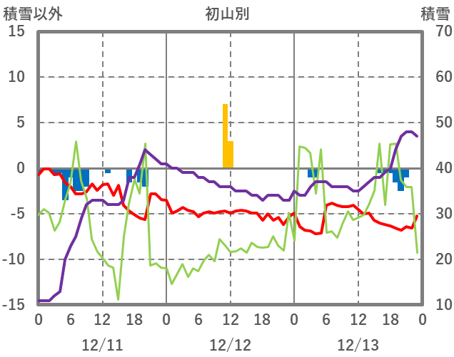 | 日 | 時 | 気温 | 降水 | 風向/風速 | 日照 | 積雪 | 降雪 |