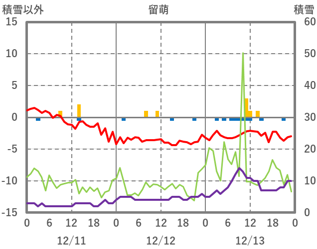 | 日 | 時 | 気温 | 降水 | 風向/風速 | 日照 | 積雪 | 降雪 |