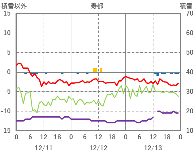 | 日 | 時 | 気温 | 降水 | 風向/風速 | 日照 | 積雪 | 降雪 |