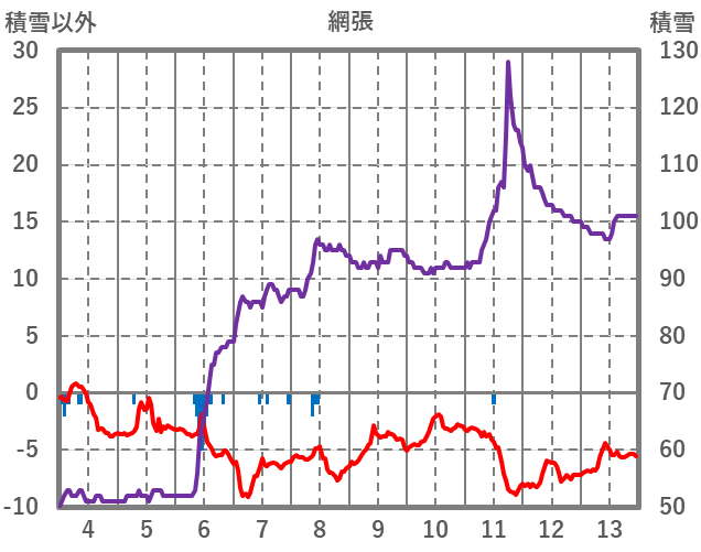 | 日 | 時 | 気温 | 降水 | 風向/風速 | 日照 | 積雪 | 降雪 |