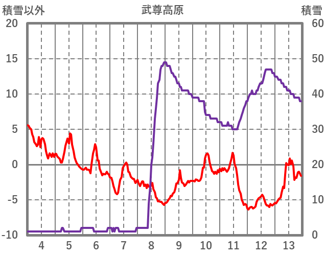 | 日 | 時 | 気温 | 降水 | 風向/風速 | 日照 | 積雪 | 降雪 |