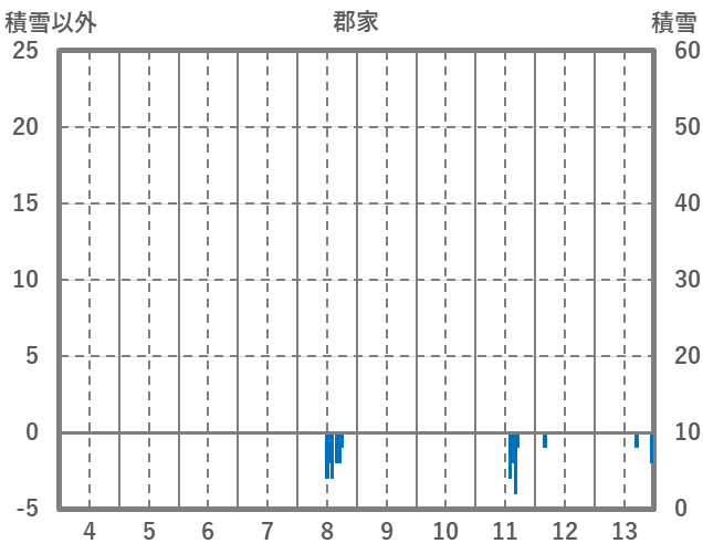 | 日 | 時 | 気温 | 降水 | 風向/風速 | 日照 | 積雪 | 降雪 |