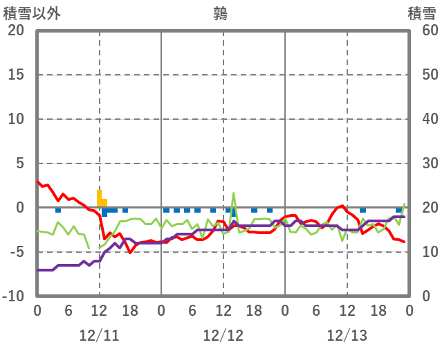 | 日 | 時 | 気温 | 降水 | 風向/風速 | 日照 | 積雪 | 降雪 |