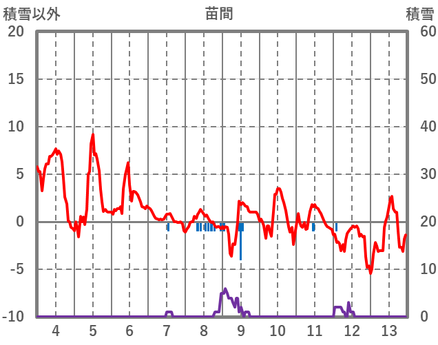 | 日 | 時 | 気温 | 降水 | 風向/風速 | 日照 | 積雪 | 降雪 |