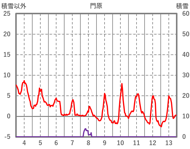 | 日 | 時 | 気温 | 降水 | 風向/風速 | 日照 | 積雪 | 降雪 |