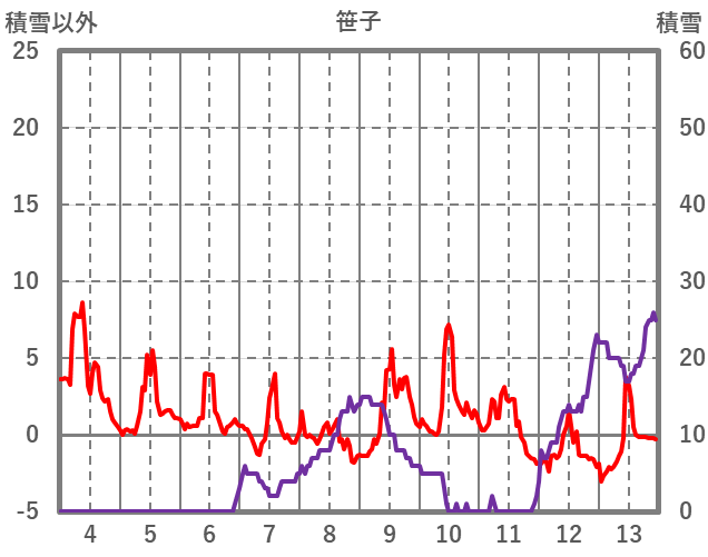| 日 | 時 | 気温 | 降水 | 風向/風速 | 日照 | 積雪 | 降雪 |