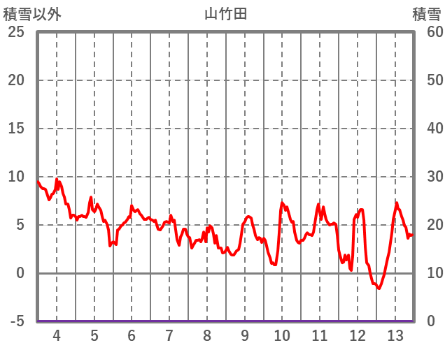 | 日 | 時 | 気温 | 降水 | 風向/風速 | 日照 | 積雪 | 降雪 |