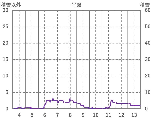 | 日 | 時 | 気温 | 降水 | 風向/風速 | 日照 | 積雪 | 降雪 |