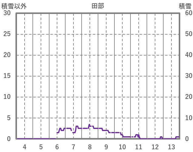 | 日 | 時 | 気温 | 降水 | 風向/風速 | 日照 | 積雪 | 降雪 |