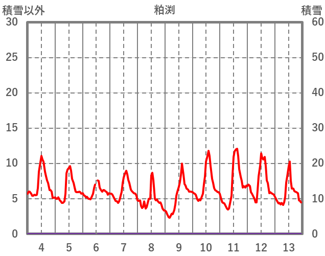 | 日 | 時 | 気温 | 降水 | 風向/風速 | 日照 | 積雪 | 降雪 |