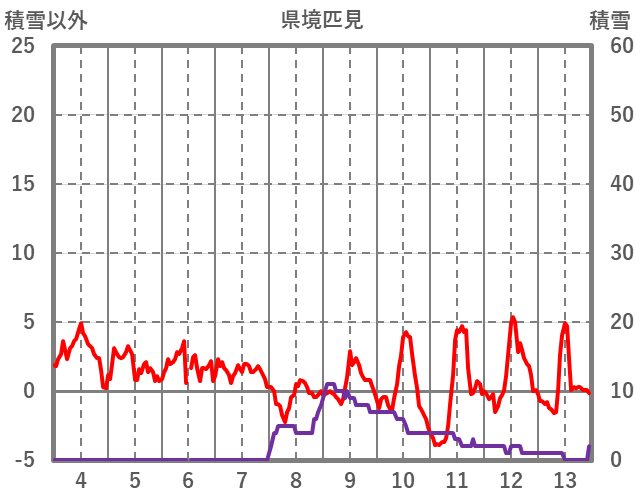 | 日 | 時 | 気温 | 降水 | 風向/風速 | 日照 | 積雪 | 降雪 |