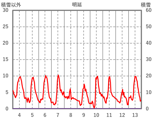 | 日 | 時 | 気温 | 降水 | 風向/風速 | 日照 | 積雪 | 降雪 |