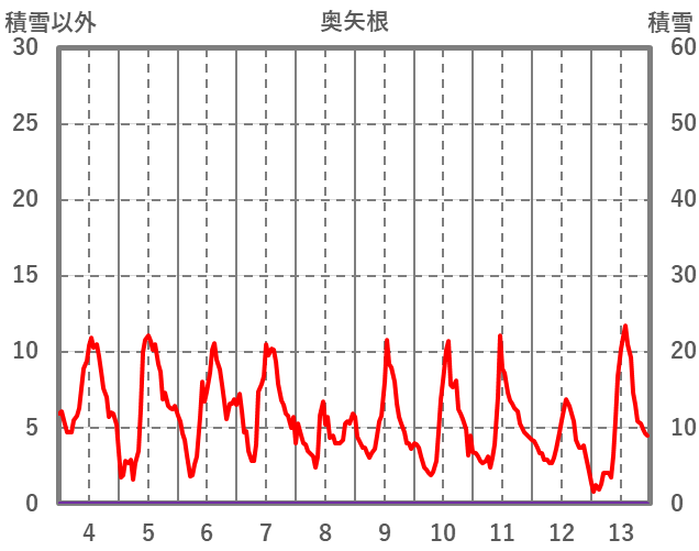 | 日 | 時 | 気温 | 降水 | 風向/風速 | 日照 | 積雪 | 降雪 |