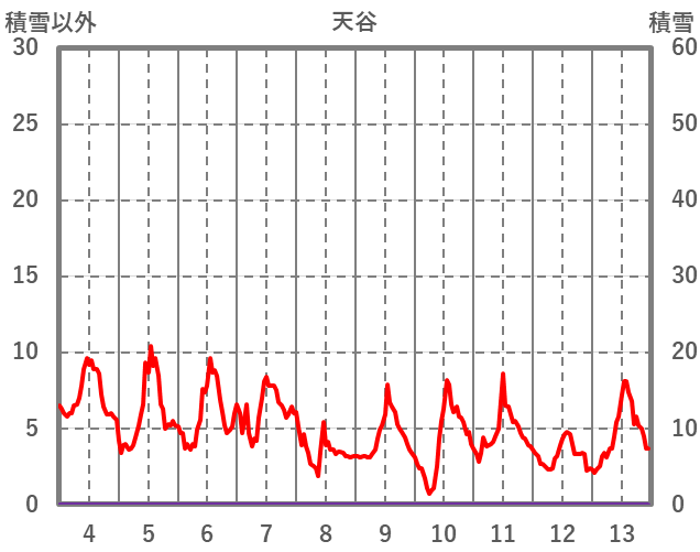 | 日 | 時 | 気温 | 降水 | 風向/風速 | 日照 | 積雪 | 降雪 |